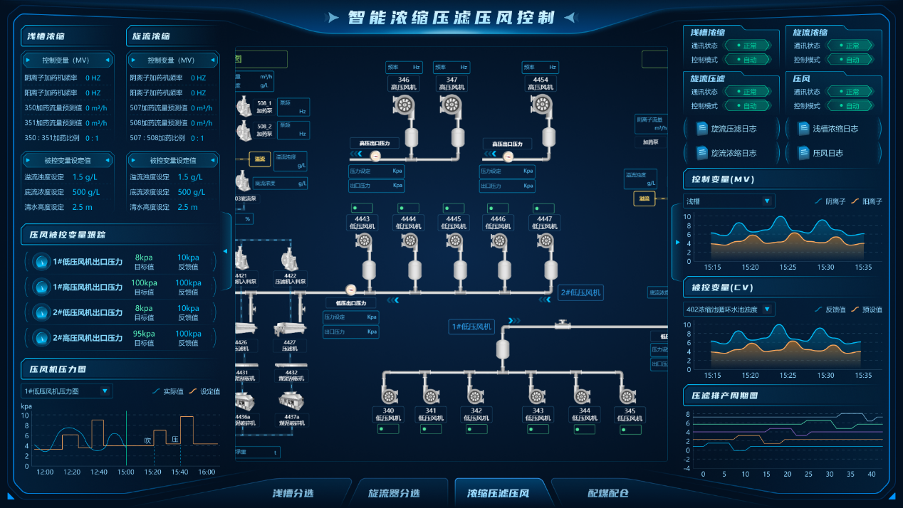 “數據-模型雙驅動的選煤廠智能控制與決策系統(tǒng)的研究與應用”項目研發(fā)了“數據-模型雙驅動”的選煤廠控制系統(tǒng),融合模型預測控制(MPC)、無模型自適應控制(MFAC)與多輸入多輸出預測模型控制,實現了重介分選、濃縮壓濾、精準配煤等環(huán)節(jié)的毫秒級閉環(huán)控制。