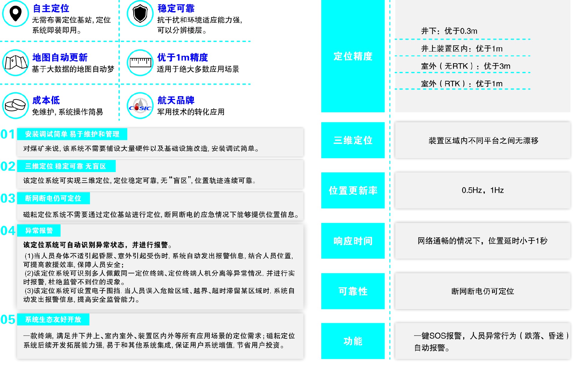 產(chǎn)品簡(jiǎn)介:選煤廠主廠房、篩分破碎車(chē)間等建筑內(nèi)的大型設(shè)備立體空間結(jié)構(gòu)復(fù)雜、遮擋嚴(yán)重,眾多電氣設(shè)備特別是變頻設(shè)備存在大量諧波及電磁干擾,現(xiàn)有定位技術(shù)不適用于選煤廠的復(fù)雜環(huán)境。針對(duì)選煤廠的復(fù)雜環(huán)境特點(diǎn),我公司首次研發(fā)了基于空間固有磁場(chǎng)特征的“磁耘”多源融合智能精確定位系統(tǒng)。該系統(tǒng)通過(guò)無(wú)源被動(dòng)的自主導(dǎo)航定位,為選煤廠復(fù)雜環(huán)境提供了一種穩(wěn)定、高效且抗干擾的全新人員精準(zhǔn)定位解決方案。“磁耘”多源融合定位系統(tǒng)是基于地磁技術(shù)的人員定位系統(tǒng),其基本原理是利用不同位置的固有磁場(chǎng)差異來(lái)確定人員位置信息,同時(shí)還融合了慣導(dǎo)、藍(lán)牙、北斗等定位技術(shù),實(shí)現(xiàn)了室內(nèi)外一體化定位。
